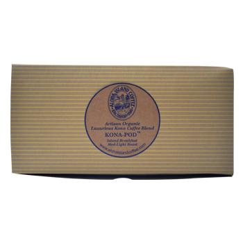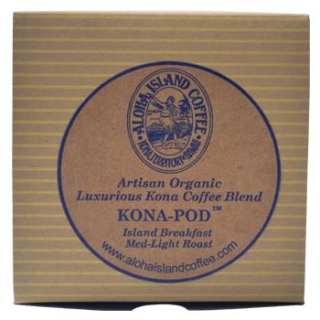 Aloha Island Kona Breakfast Blend single-serve coffee brews a delicious cup of Hawaiian Kona blended coffee in just minutes when you use your single cup coffee machine. Aloha Island Kona Breakfast Blend coffee is sweet and smooth with a rather mild aftertaste that makes it a perfect Breakfast Blend coffee. Aloha Island Kona Breakfast Blend Coffee Pods are available in bulk quantities. This quality Kona coffee blend arrives with each coffee pod individual wrapped in foil packets that preserve the smooth flavor.